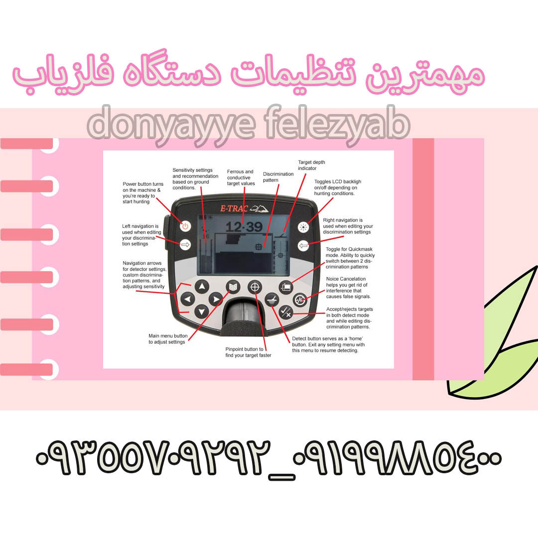 تنظیمات دستگاه میتواند به چندین بخش تقسیم شود که هر کدام به نحوی بر عملکرد دستگاه تاثیر میگذارند. این تنظیمات شامل حساسیت، تفکیک فلزات، بالانس زمین، تنظیمات صوتی، و تنظیمات نمایشگر میباشند.